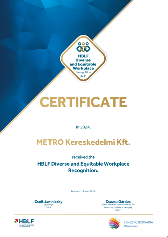 Sokszínű, befogadó és méltányos munkahelyként folyamatosan ápolni és fejleszteni szükséges a #oneMETRO szellemében épített vállalati kultúránkat, így a díj mérföldkő és motiváció is egyben, hogy folytassuk megkezdett munkánkat.
